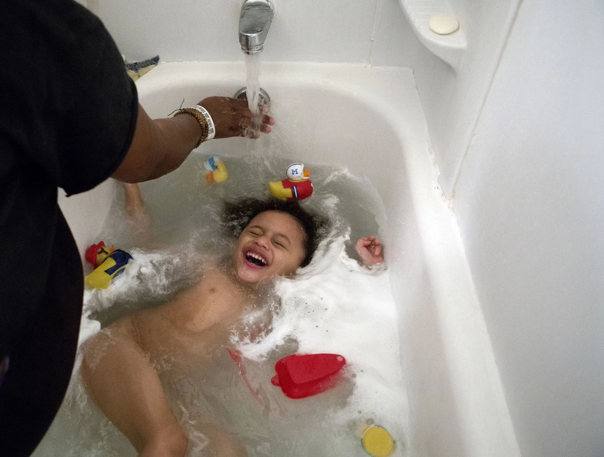 Nandi Hill, 22 and her son Mike, 3, prepares for bed on December 23rd 2014. "Single parenting is hard, the challenges started when I had to potty train my son and I had to teach him how to do it like a Man" Nandi stated. She tells her son everyday that he is handsome, smart, kind, strong, blessed and important, in hopes that he will live up to all of these qualities.
